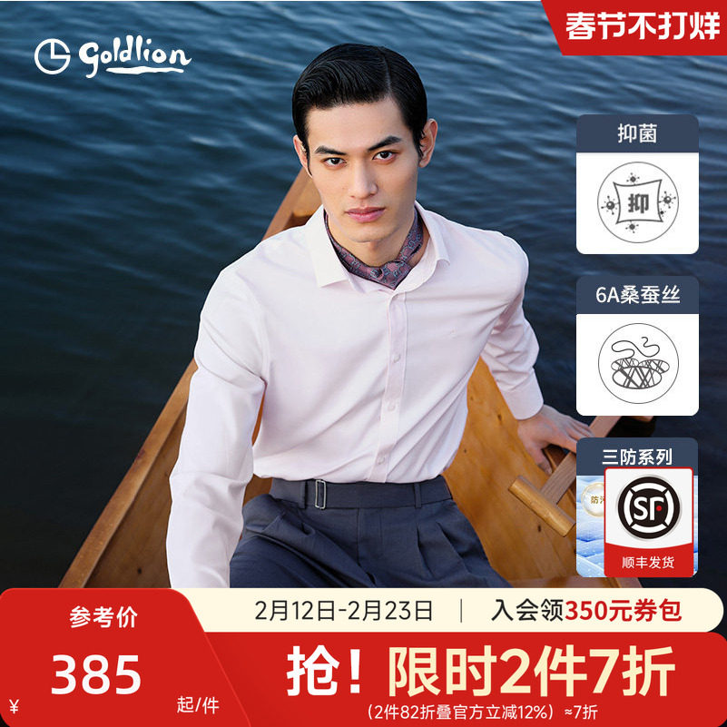 【磨毛】金利来秋冬新款男士桑蚕丝长袖衬衫商务正装衬衣男款上衣