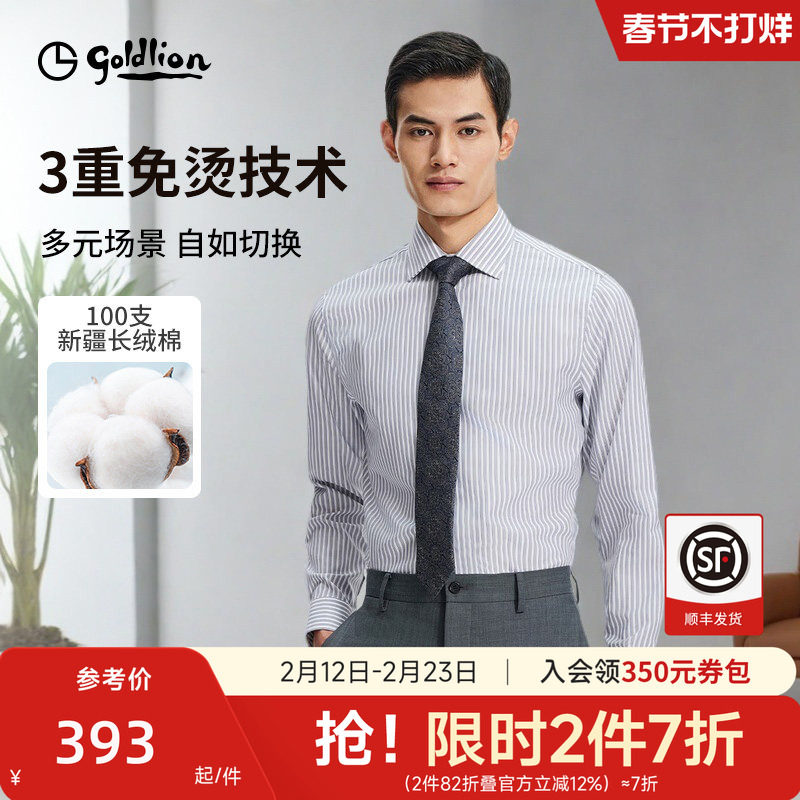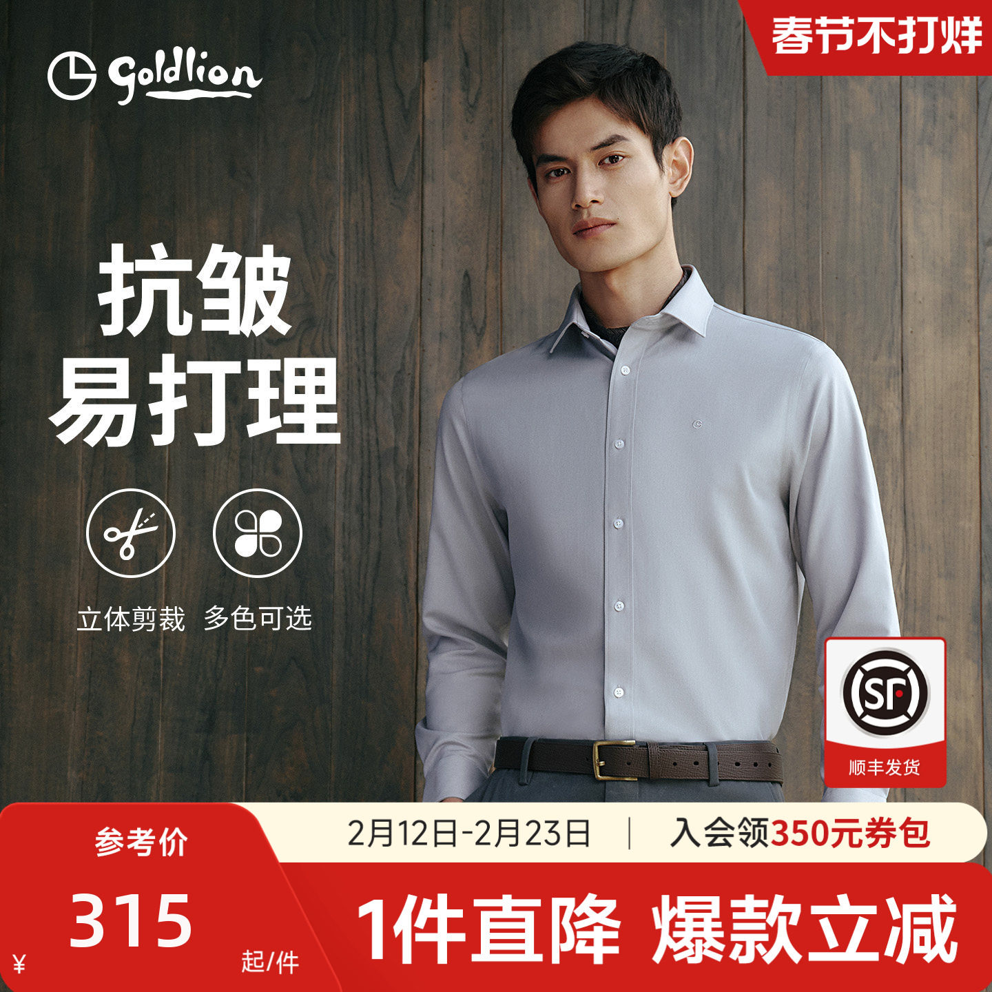 【免烫衬衫】金利来3D免烫二代新款男士衬衣纯棉易打理商务白衬衫