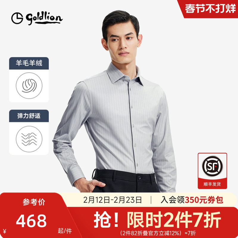 【桑蚕丝三防】金利来秋冬新款白衬衫商务衬衣抗皱条纹长袖男上衣