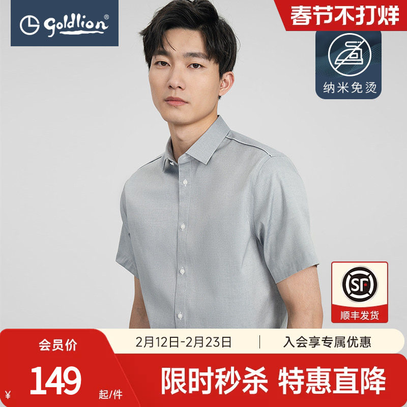 【透气】金利来夏季新款衬衫男款高级感易打理修身版商务短袖衬衫