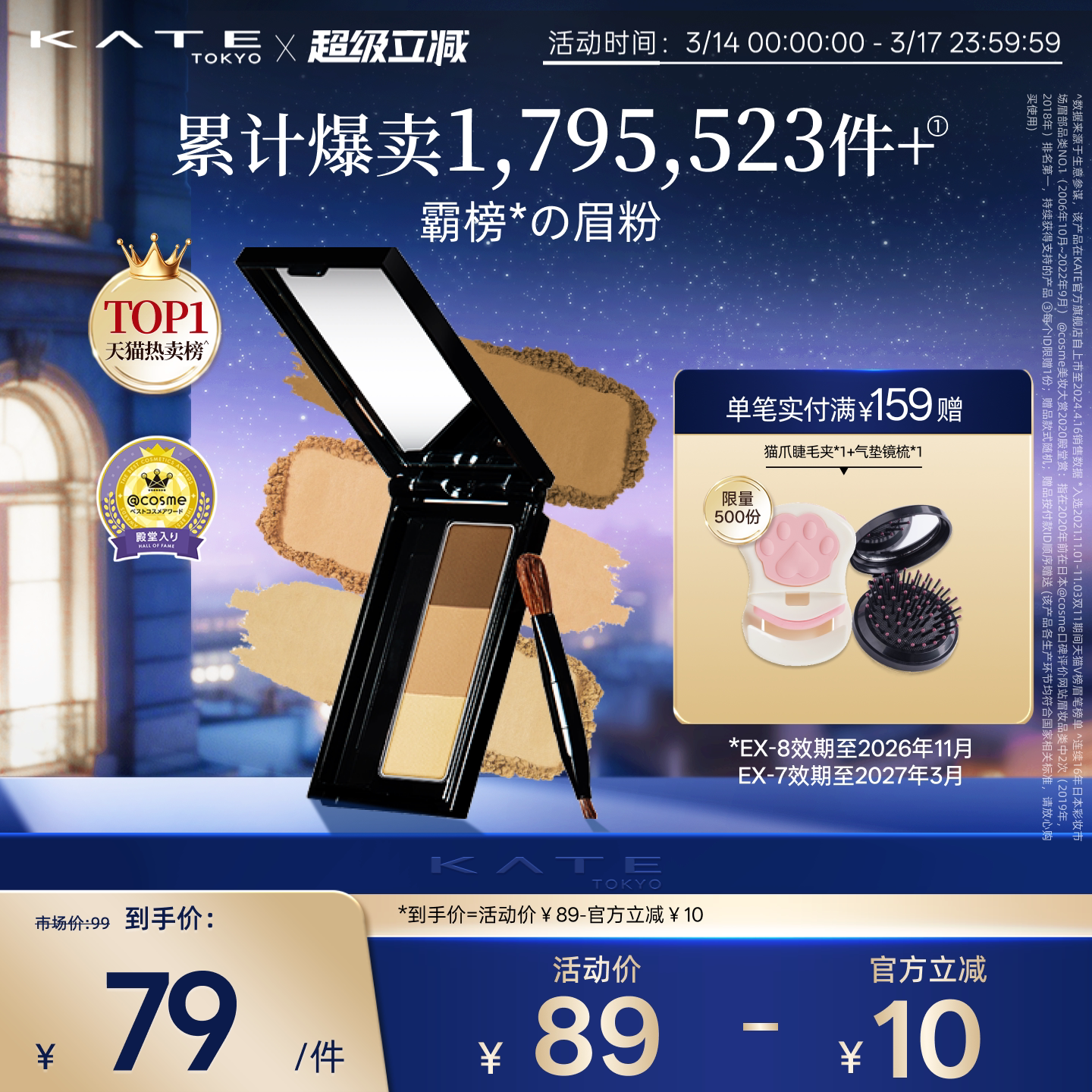 【超级立减】KATE/凯朵立体造型三色眉粉盘女修容日本持久不脱色