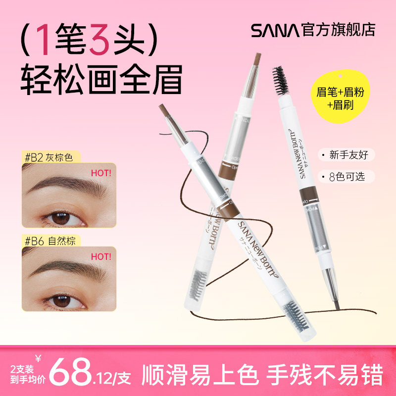 日本SANA莎娜三合一眉笔女防水持久不脱色眉粉眉刷三用野生眉正品