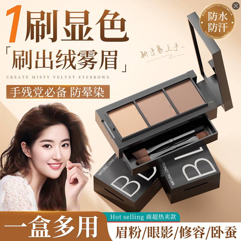 三色眉粉盘防水防汗不脱色雾感绒眉毛新手画眉神器官方旗舰店正品