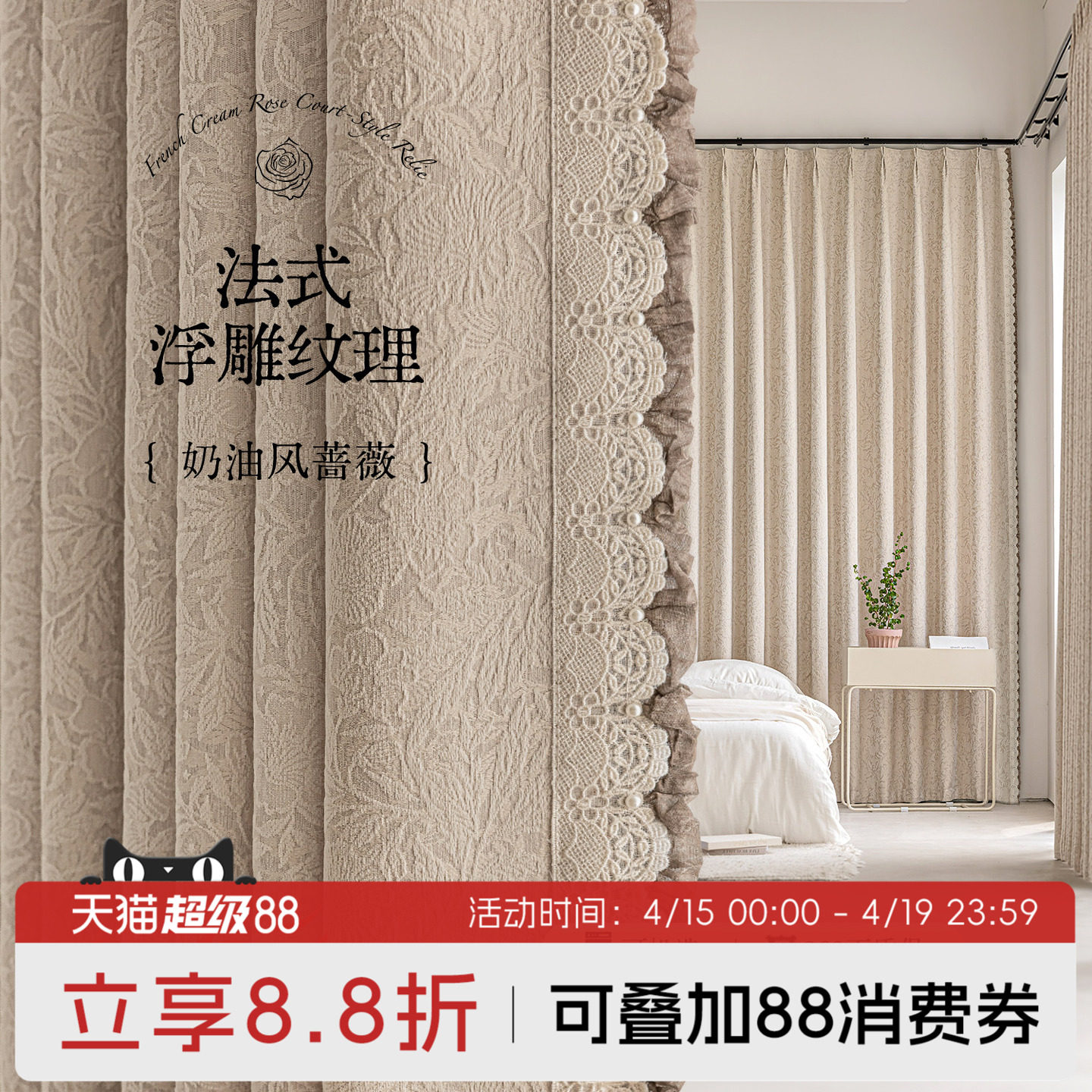 【重工系列】法式复古蔷薇窗帘蕾丝花边高级感轻奢定制遮光雪尼尔