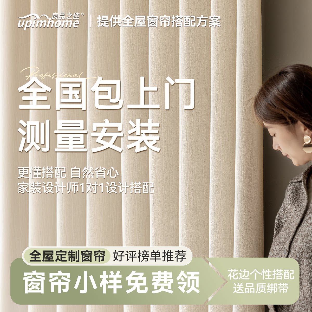 良品之佳高级感全屋窗帘定制绍兴柯桥法式奶油遮光包上门安装定做