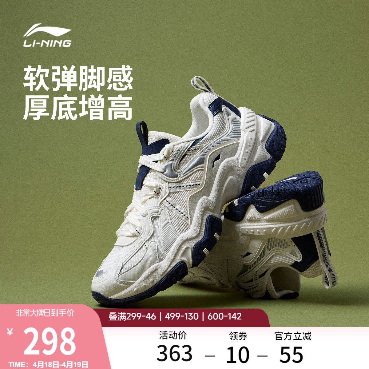 李宁天迹SOFT丨休闲鞋女鞋2026夏季新款增高厚底板鞋运动鞋男鞋子