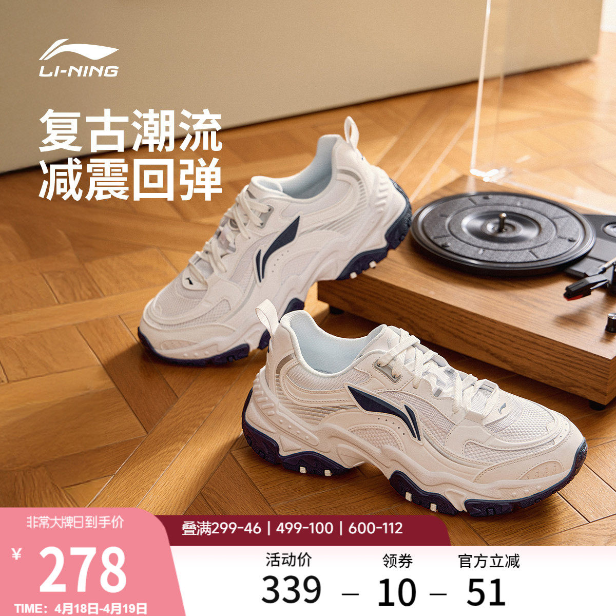 李宁红糖丨休闲鞋男鞋新款复古老爹鞋减震回弹厚底增高跑步运动鞋