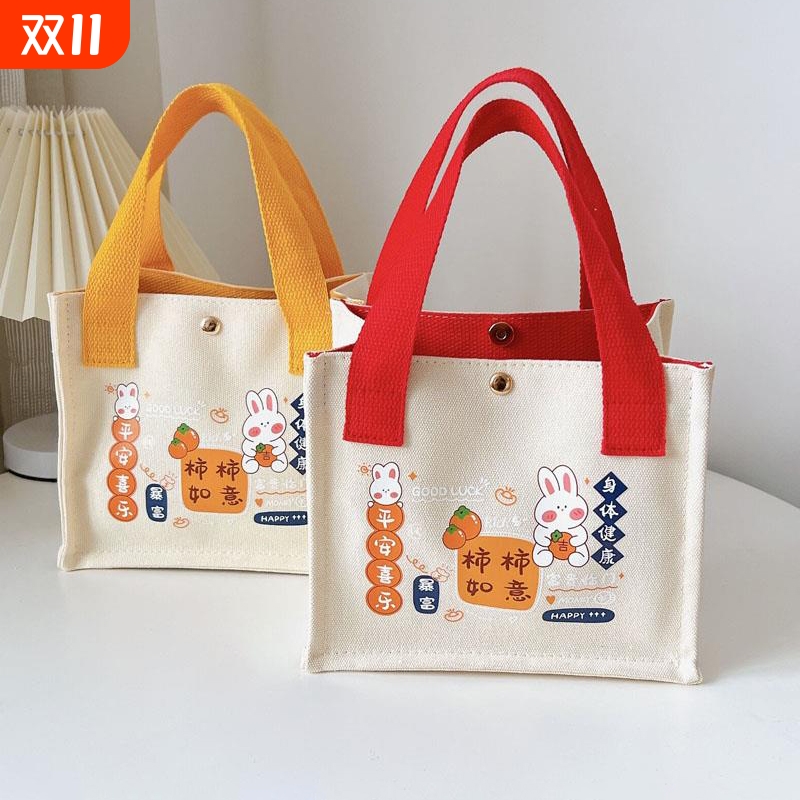 帆布包女包小包时尚休闲可爱手提包小方包便当包手提袋饭盒袋子大