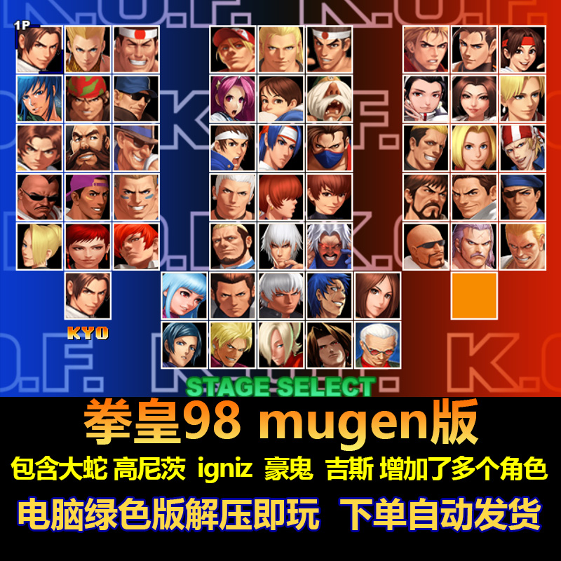 拳皇98mugen版包含大蛇 高尼茨 igniz 豪鬼 吉斯 多角色电脑版