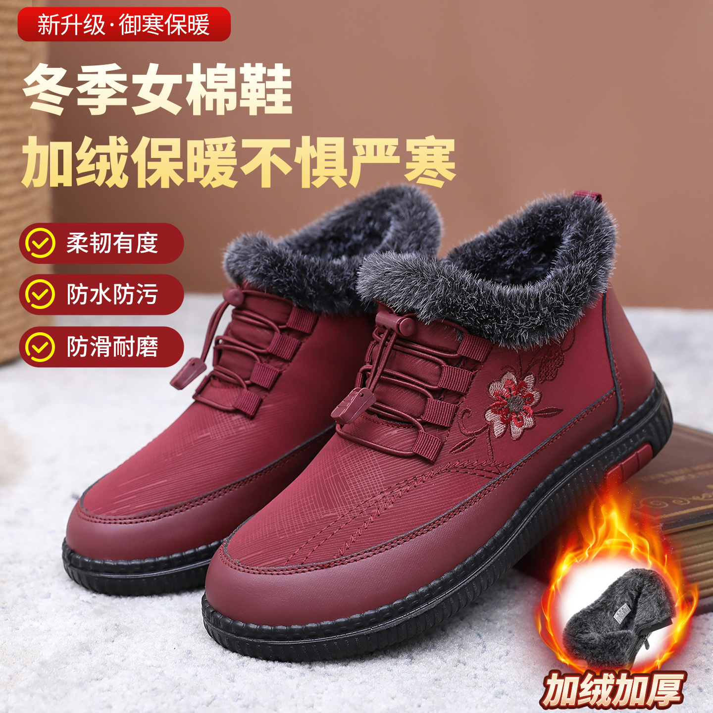 2025新款老北京棉鞋女冬季妈妈鞋加绒中老年奶奶棉鞋防滑软底防水