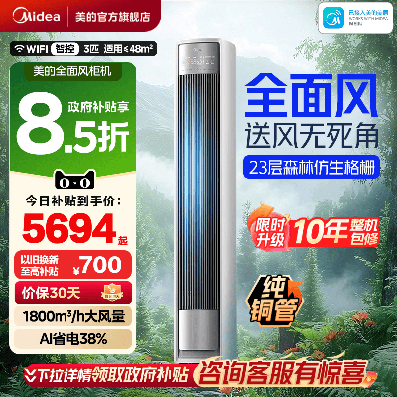 美的酷省电ultra立式4匹客餐厅智能家用冷暖柜机全面风空调正品85