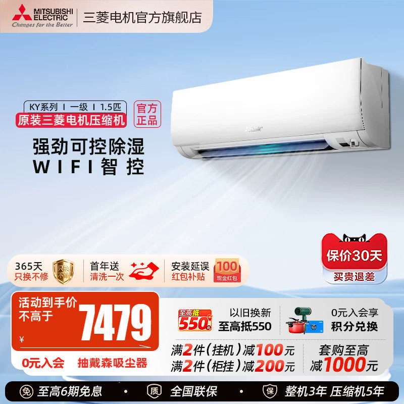三菱电机MSZ-KY12VFK一级变频1.5匹智能家用空调冷暖卧室挂机官方
