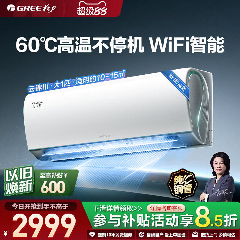 格力云锦三代空调智能一级能效变频冷暖正1.5匹大1匹省电静音挂机