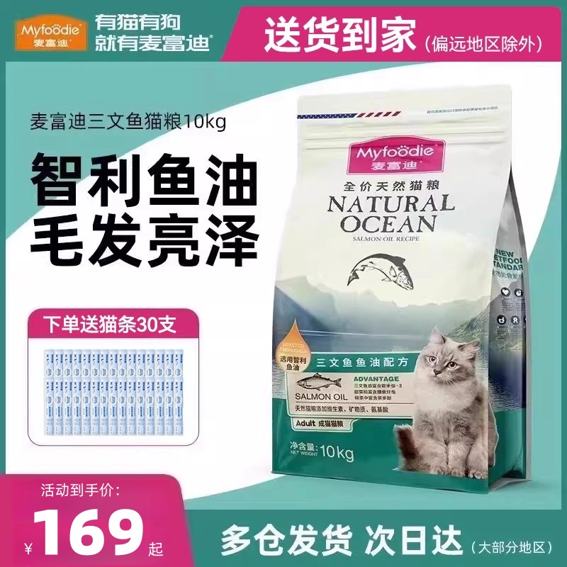 麦富迪猫粮20斤成猫通用营养增肥发腮三文鱼鱼油猫粮10kg实惠装