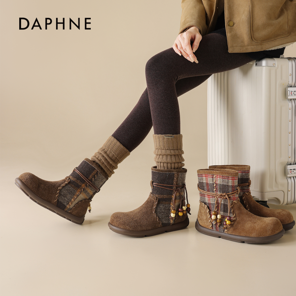 达芙妮复古英伦短靴女2026新款冬季加绒平底勃肯马丁靴博肯雪地靴