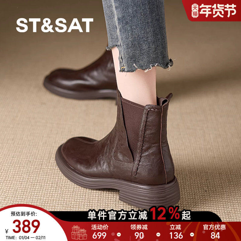 星期六明星同款复古切尔西短靴女秋冬平底真皮厚底百搭气质马丁靴