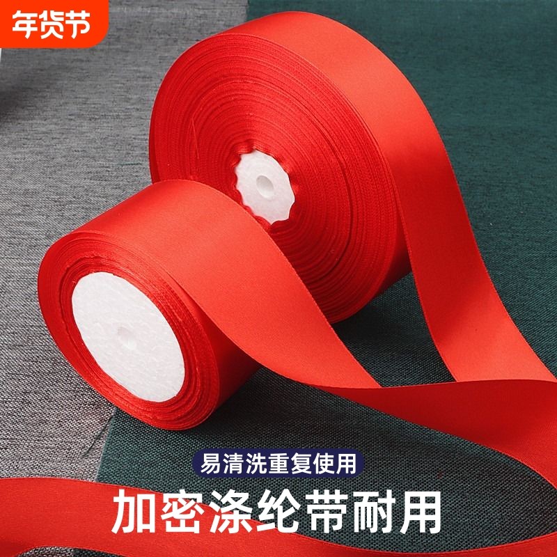 大红丝带缎带绸带礼品包装带婚庆乔迁红布条红色彩带包边大卷涤纶