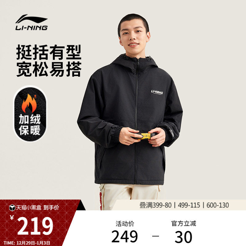 李宁外套男冬季新款情侣风衣加绒加厚休闲潮流复古上衣运动夹克女