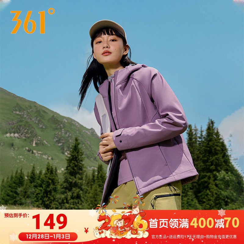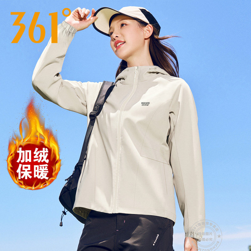 361度运动外套女2025春秋新款连帽保暖加绒风衣女冲锋衣562513605