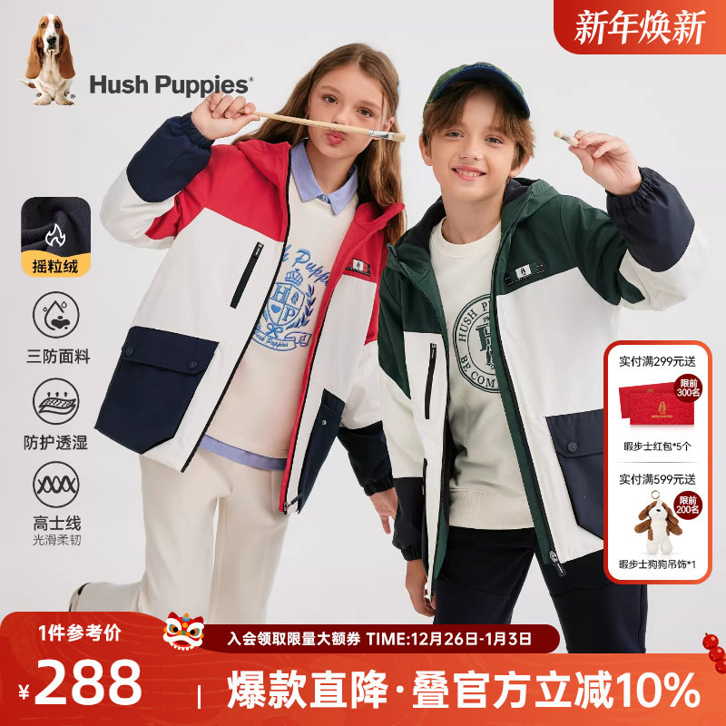 暇步士童装儿童三防外套25秋冬新款男童休闲拼色加绒风衣女童上衣