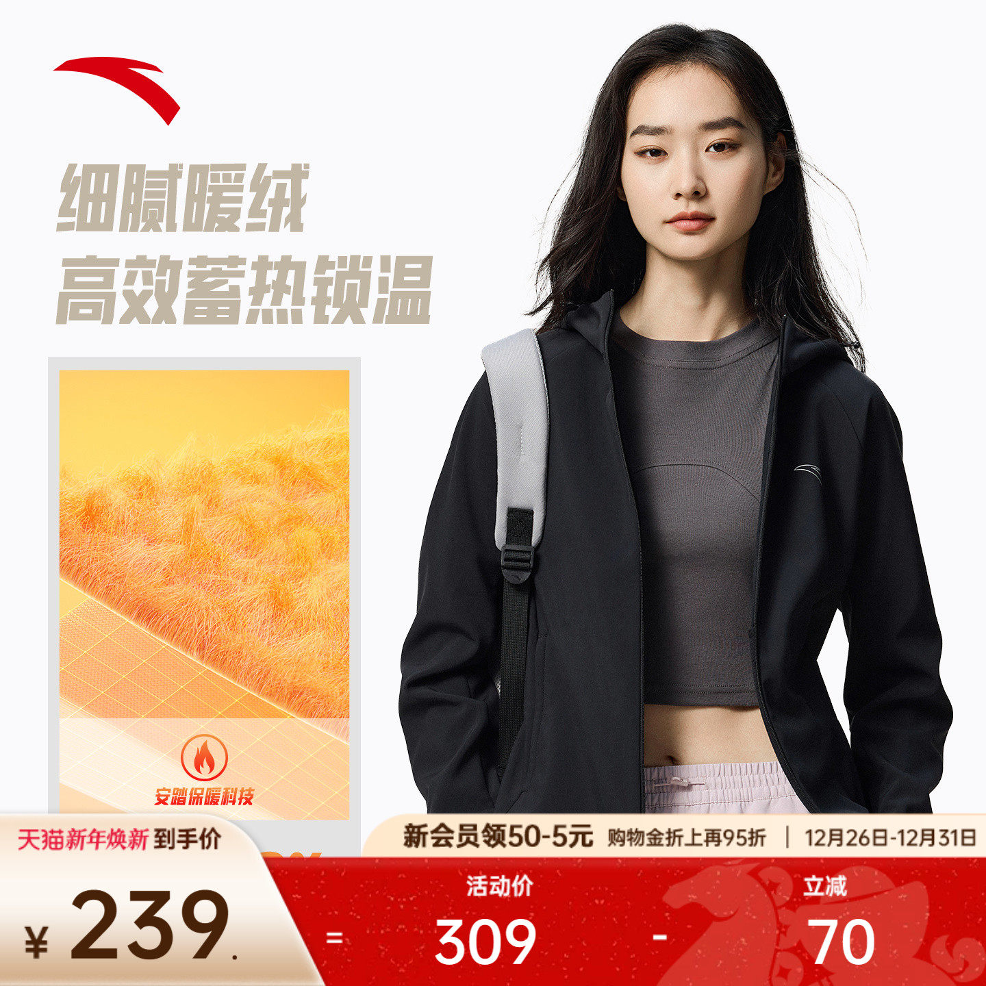 安踏防泼水外套丨长袖夹克女冬季户外软壳衣加绒保暖运动风衣上衣