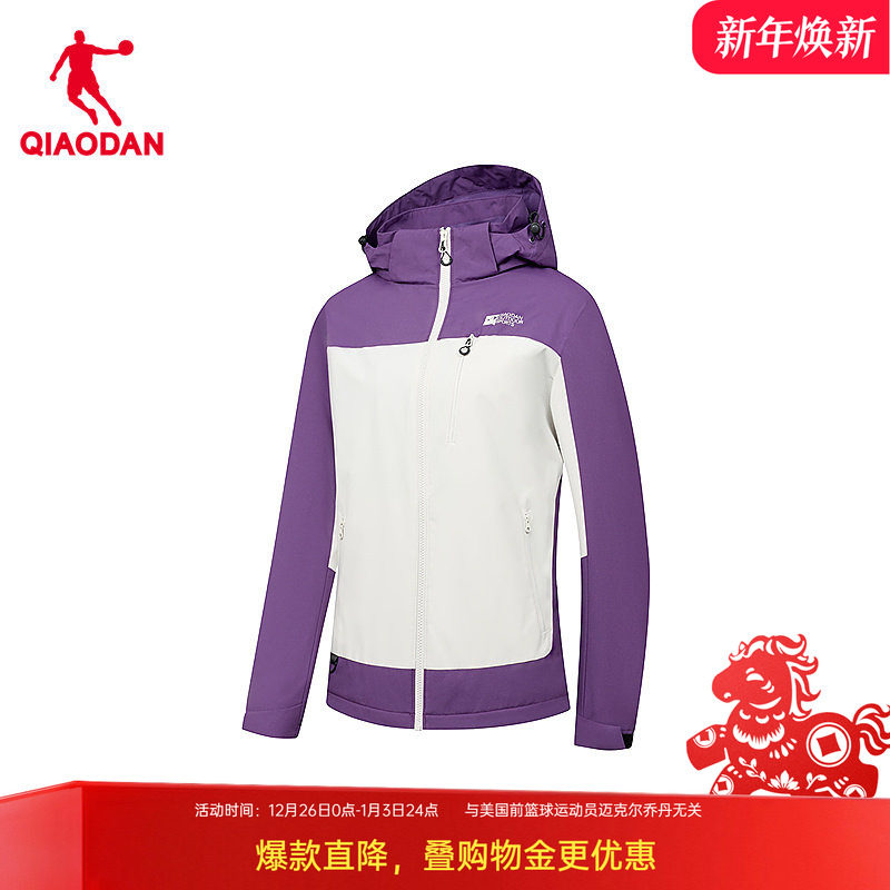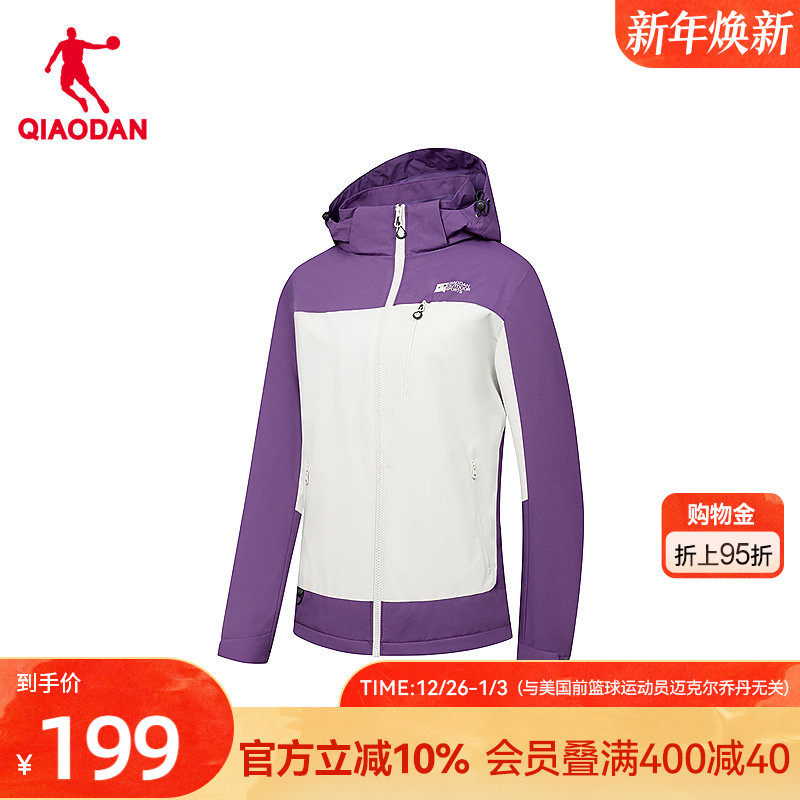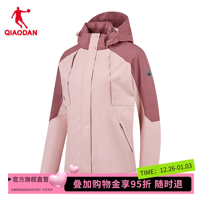 乔丹三合一加绒风衣女秋季连帽外套2025新款抓绒衣户外休闲运动服