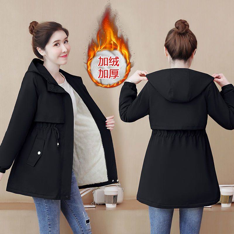 啄木鸟加绒风衣女外套中长款2025新款秋冬时尚中年妈妈连帽上衣潮