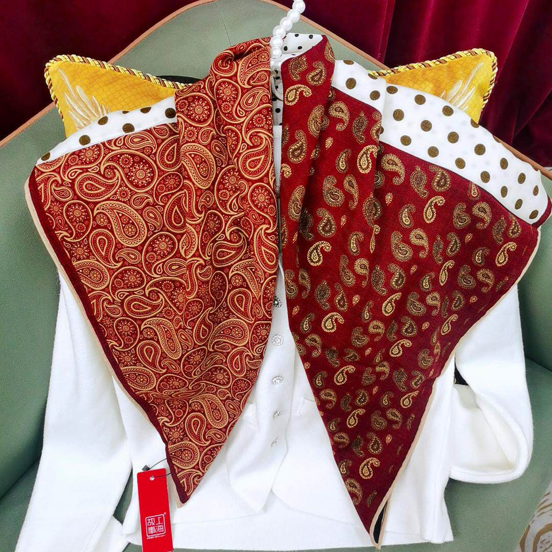 上海故事丝毛88cm佩斯利纹系列双面羊毛桑蚕丝大方巾秋冬红色围巾