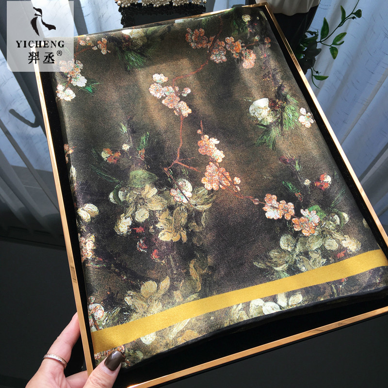 【复古油画杏花】知性女人味100%桑蚕丝大方巾真丝丝巾送礼围巾女