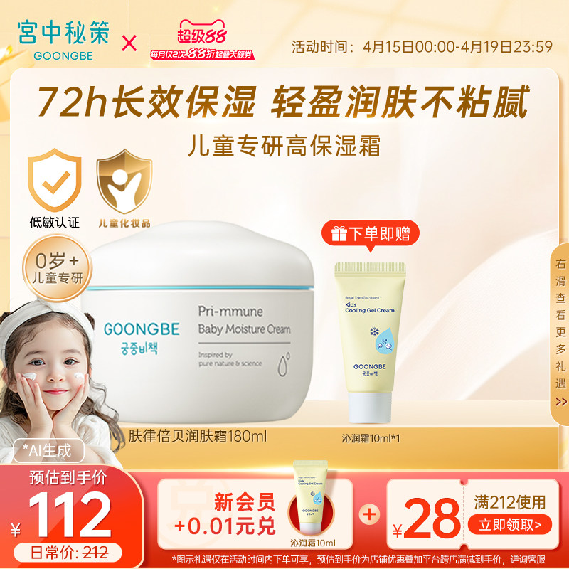 宫中秘策儿童面霜180ml婴儿宝宝专用润肤霜乳液春夏滋润护肤官方