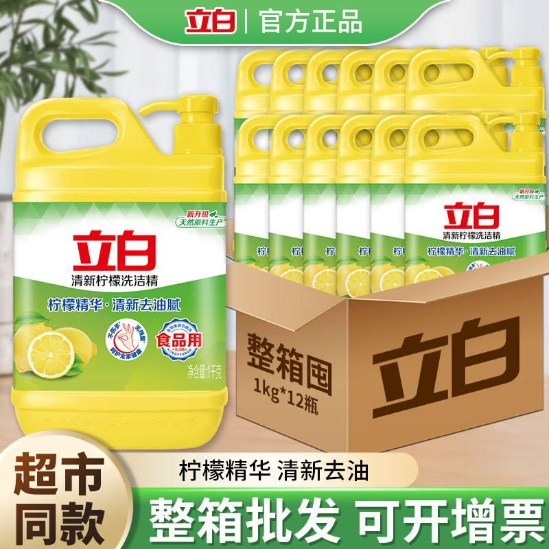 立白柠檬洗洁精家用大桶1kg*12整箱批发食品级餐饮实惠装洗涤灵