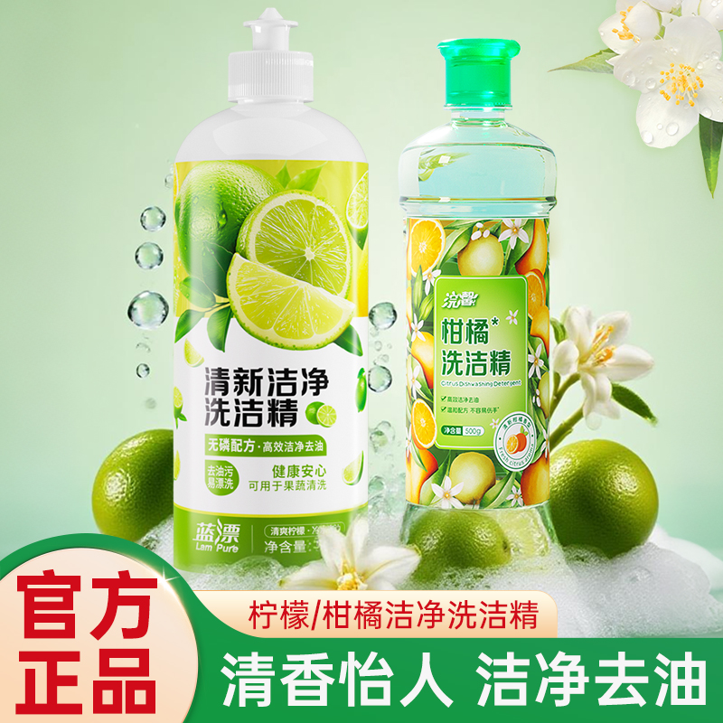 蓝漂500g洗洁精柠檬柑橘香去油大瓶家庭实惠装洗碗洗涤剂家用批发