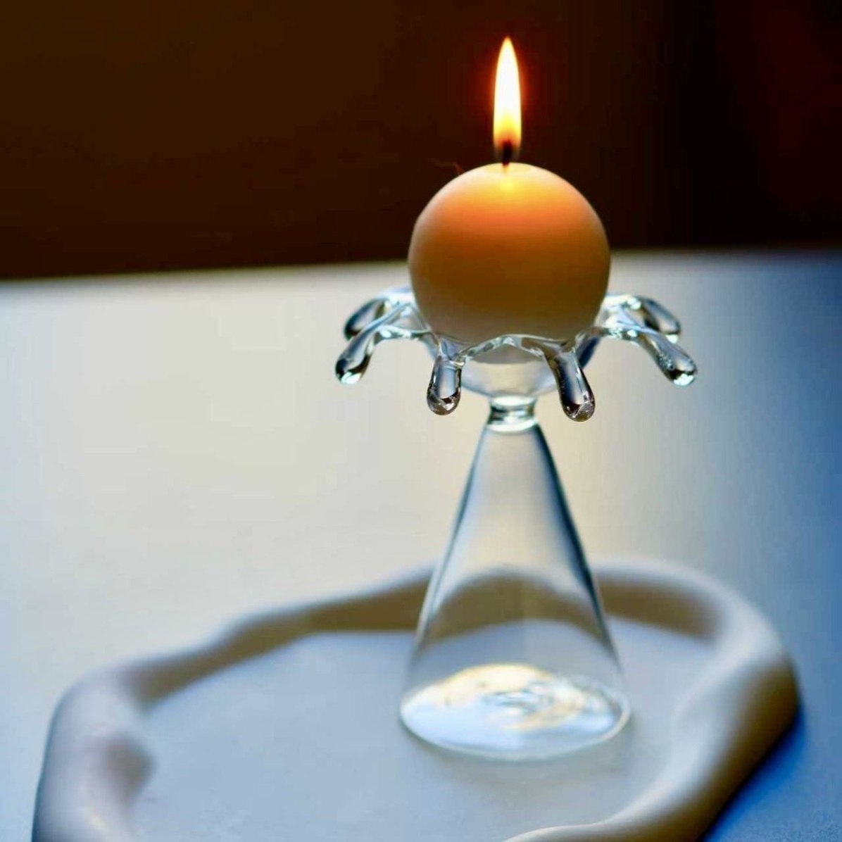 欧式玻璃烛台洒落的泪滴餐桌家用装饰小烛台蜡烛浪漫摆件求婚蜡烛