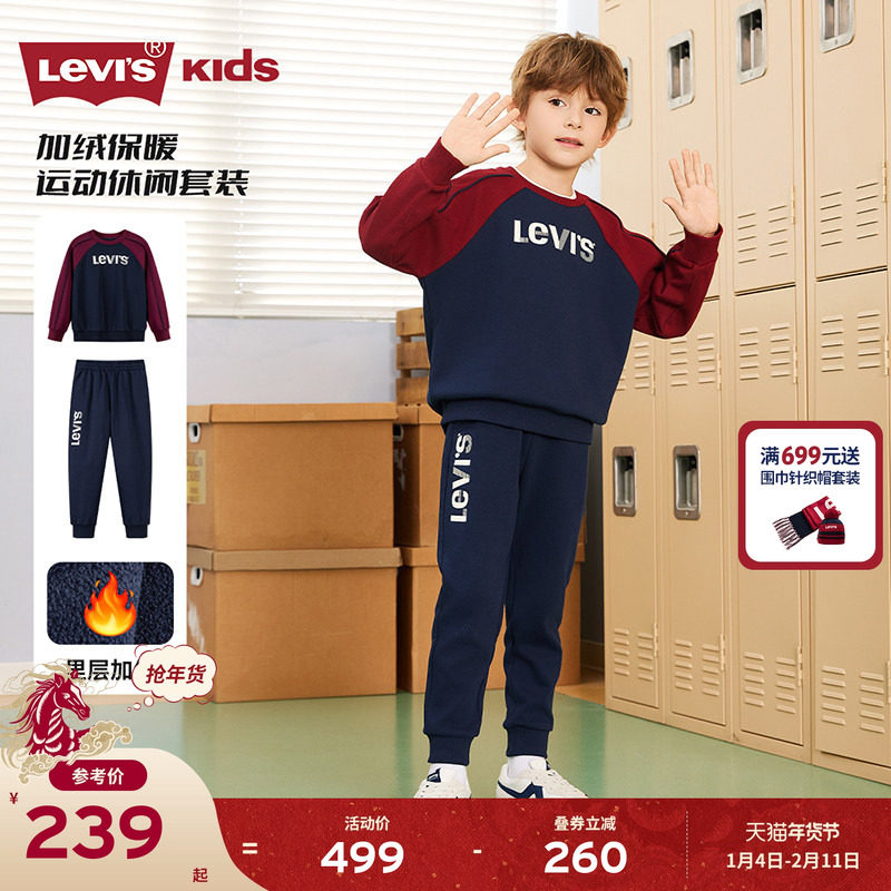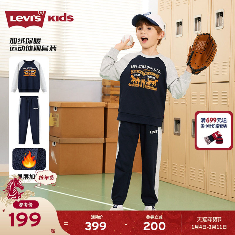 【加绒套装】Levis李维斯男童套装儿童运动童装卫衣2025冬季保暖