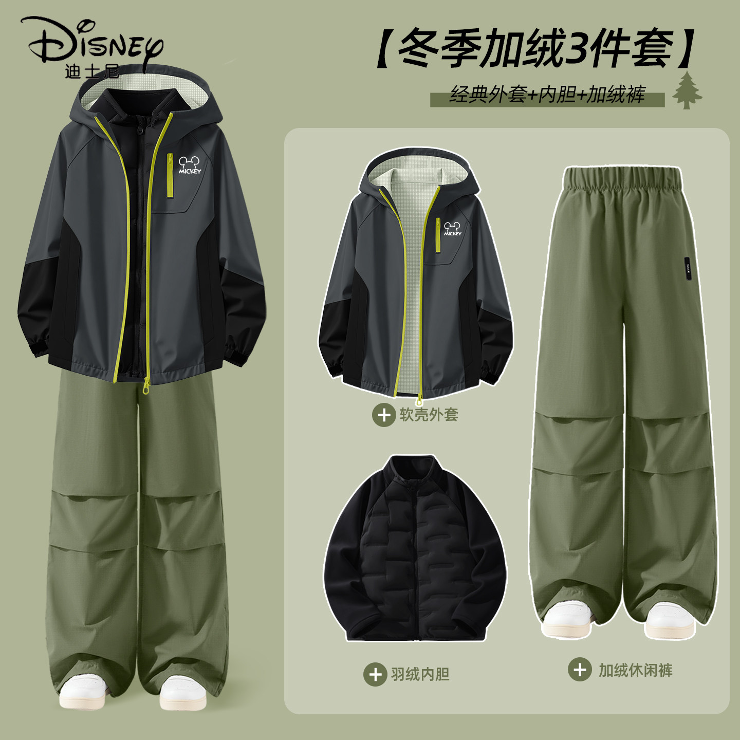 迪士尼男童冬装套装2025新款男孩加绒加厚帅气运动冬季儿童衣服厚