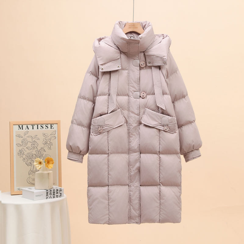 - 长款连帽羽绒服女 长过膝