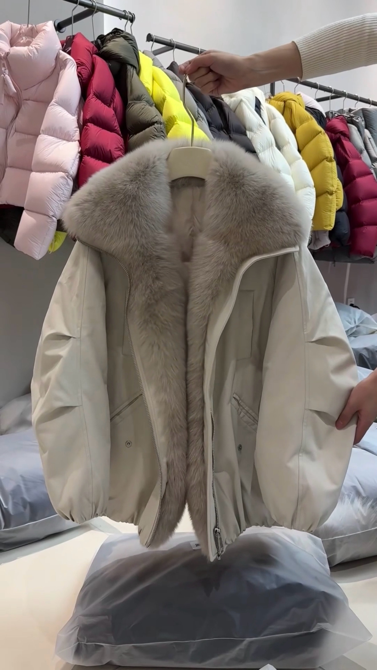 - 大毛领 收腰 羽绒服