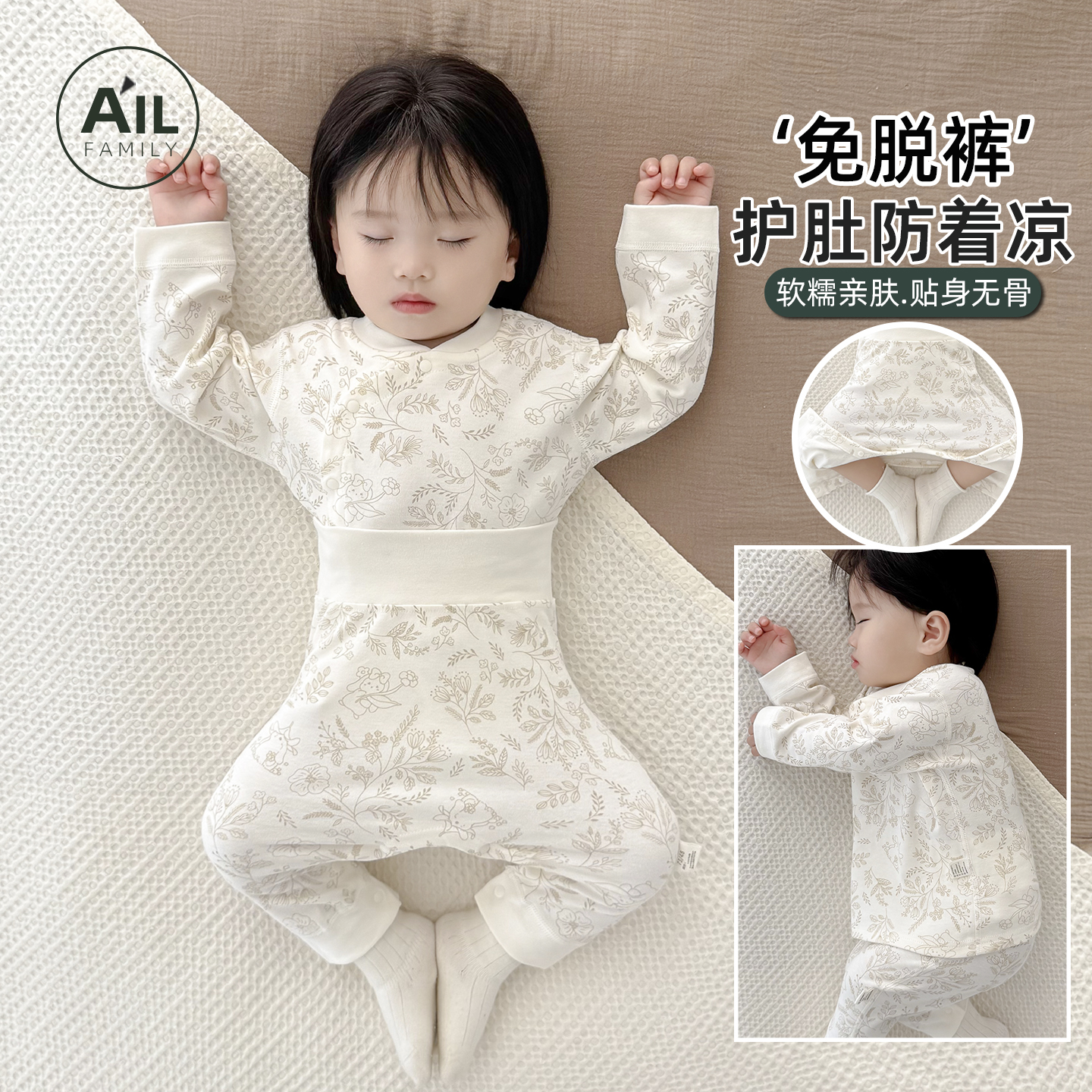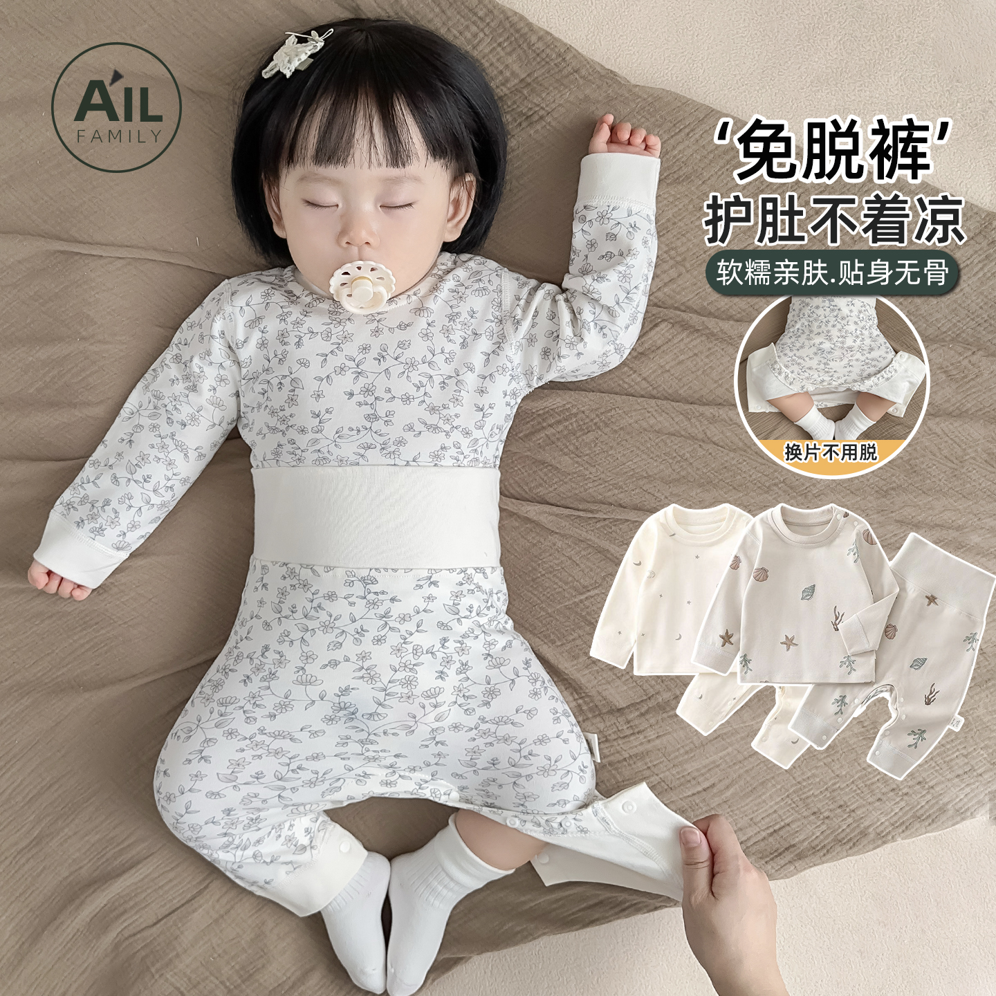 婴儿衣服春秋款纯棉分体套装高腰护肚免脱秋裤小月龄宝宝秋衣打底