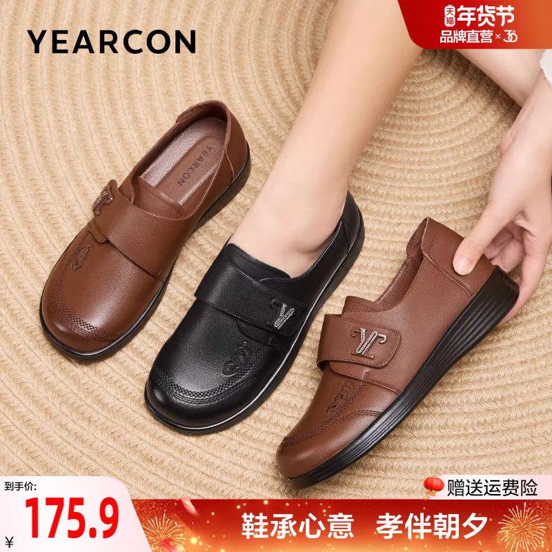 意尔康女鞋2025秋季深口真皮妈妈单鞋中老年皮鞋平底舒适软底母亲