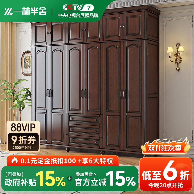 一林半舍美式实木衣柜复古轻奢储物柜四门衣柜主卧房大容量收纳柜