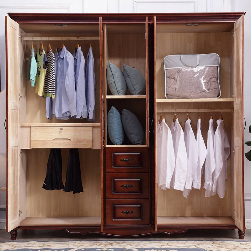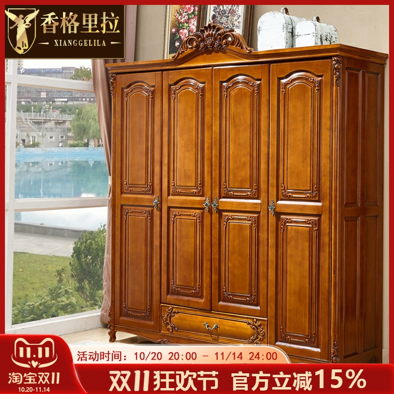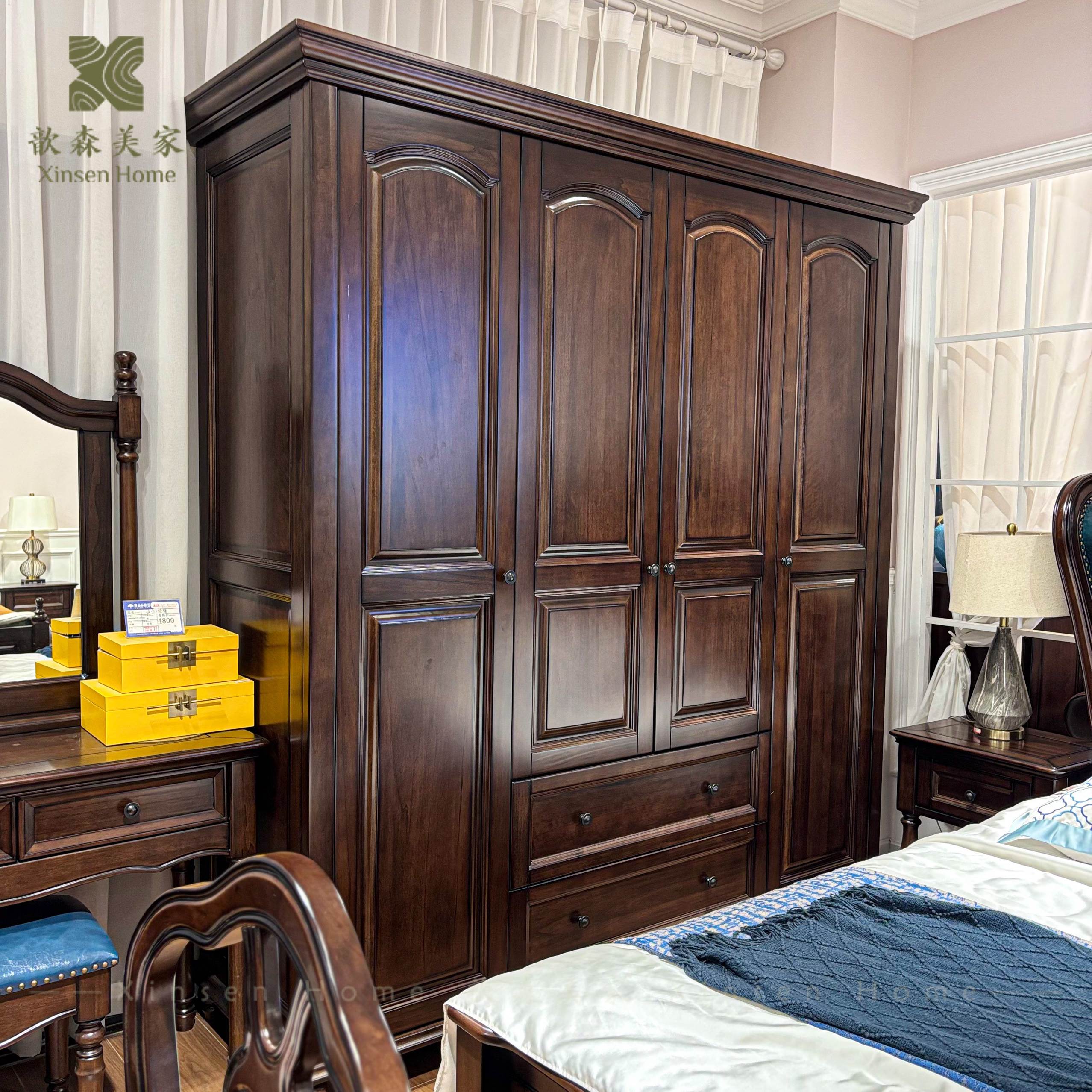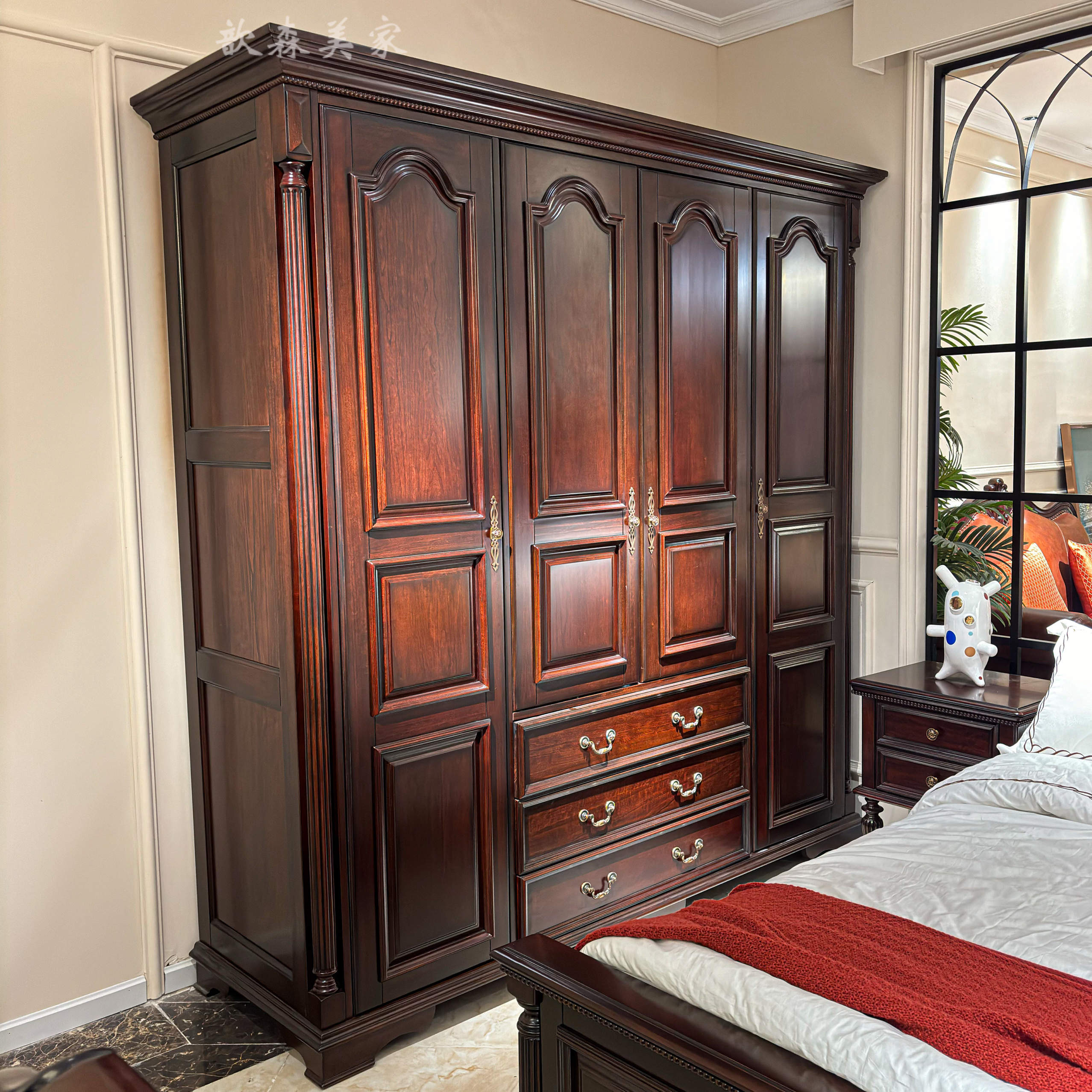美式实木四门大衣柜欧式简约衣橱卧室别墅复古衣帽间大容量储物柜