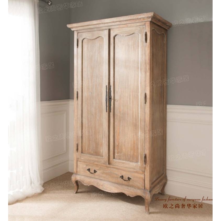 和年美家美式乡村经济型组装对开门衣柜全实木卧室家具四门挂衣柜