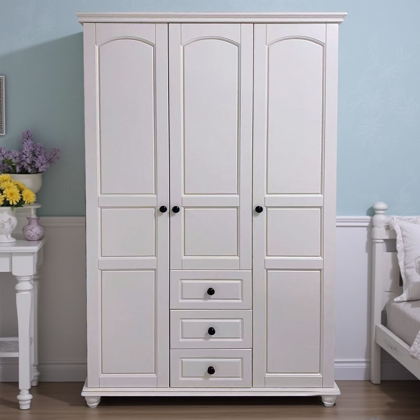 巴彼伦美式乡村实木衣柜简约复古三门四门平开门家用卧室整墙衣橱