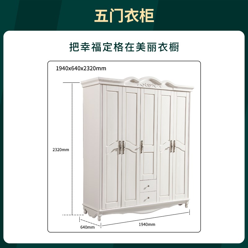 衣柜简约现代卧室欧式实木家用柜子美式轻奢四门五门六门衣橱定制