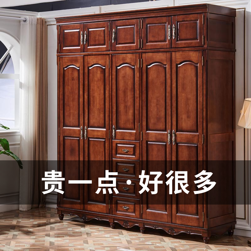 复古美式实木卧室大衣柜三四五六开门可加顶柜中古风家用储物衣橱
