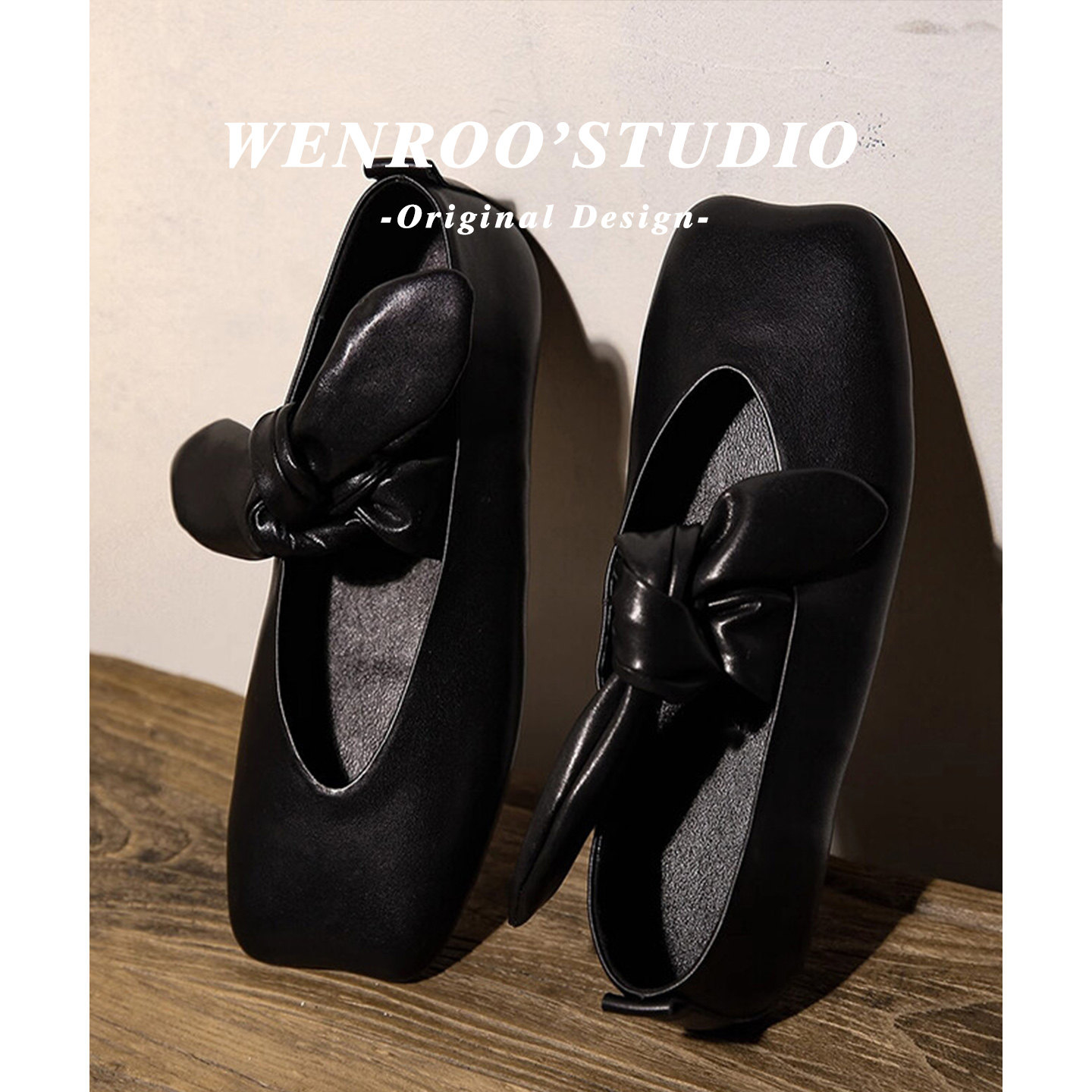 【UMA WANG】蕾虎手工方头交叉绑带芭蕾舞鞋平底高跟经典单鞋女鞋