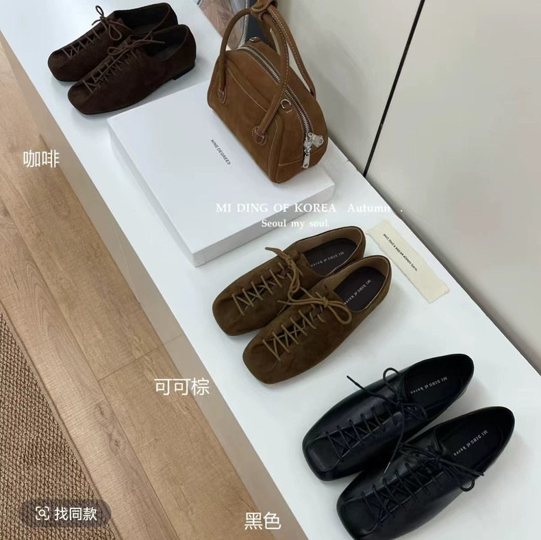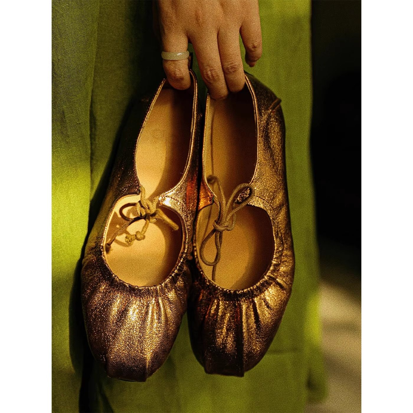 高版25ss新款复古系带芭蕾舞鞋运动休闲鞋女平底绑带舒适真皮单鞋