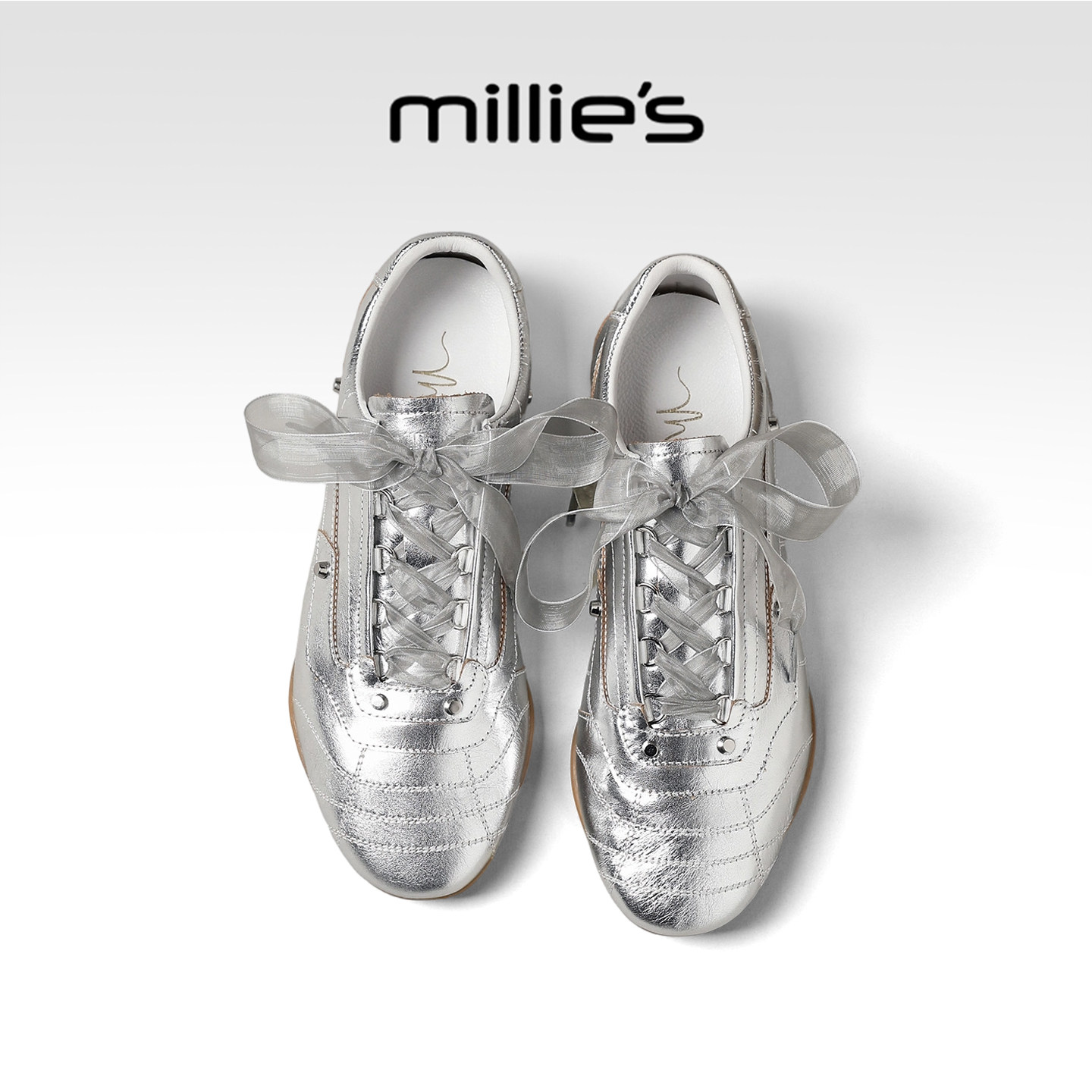 MILLIE'S/妙丽蕾丝绑带真皮德训鞋女款平底2026春季新款休闲单鞋