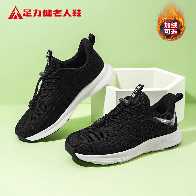 足力健老人鞋2025冬季新款黑色休闲时尚运动鞋减震舒适爸爸健步鞋