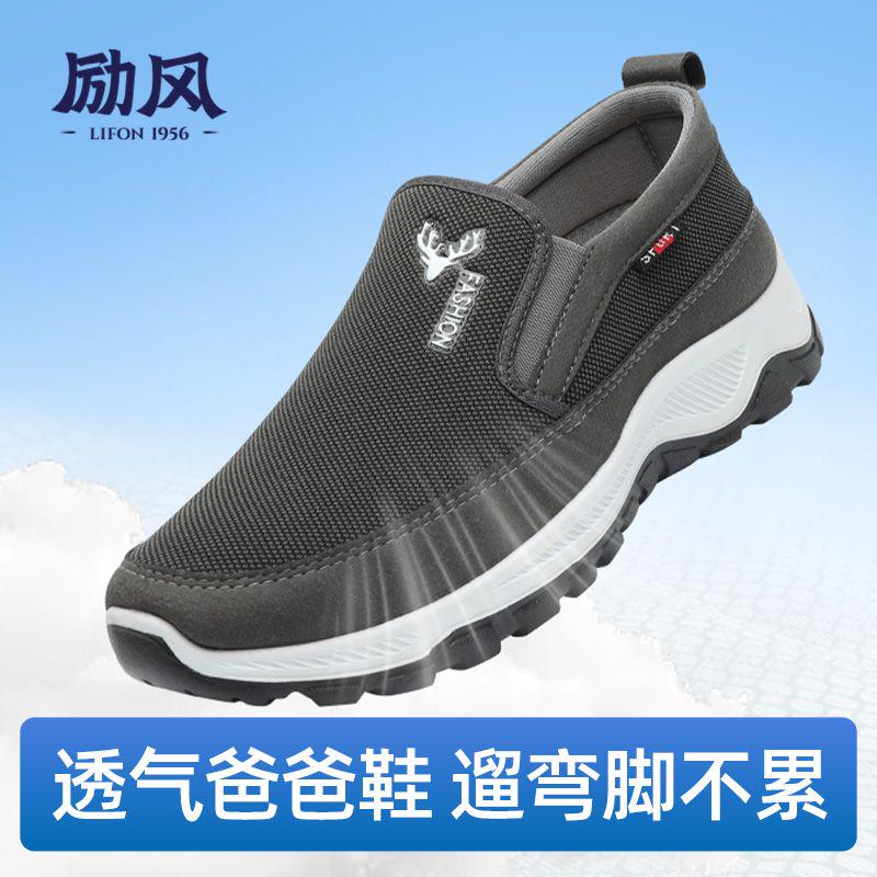 秋季老人鞋男防滑新款网面一脚蹬休闲鞋透气中老年爸爸健步鞋轻便